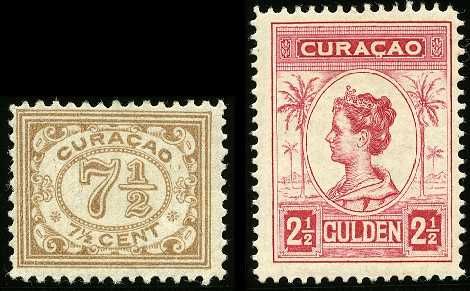 54C, 7½ cent grijsbruin in tanding 11½ en 68D/70D, 50 cent t/m 2½ Gulden in tanding 12½, ongebruikte prachtex., 54C en 70D met certificaat Ned. Bond (1966 en 1967) € 430