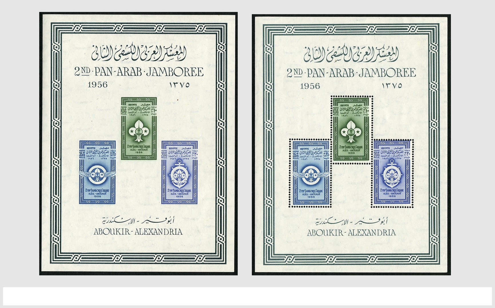 EGYPTE, blok 8A en 8B, 2e Arabische Padvinderscongres, in getand en ongetand velletje, luxe postfris. Oplage slechts 3800 sets. Cat.wrd. € 5000