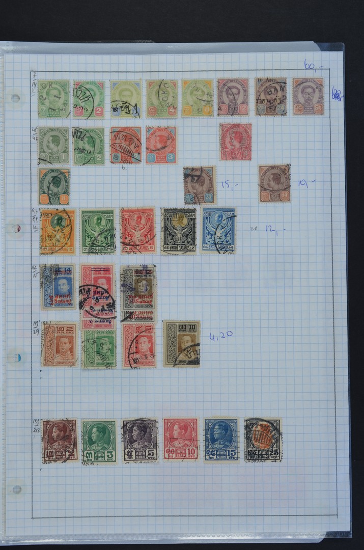 WERELD, diverse landen o/* op zelfgemaakte bladen w.o. Perzië, Portugese Koloniën, Thailand, Tunesië, Italiaanse Koloniën, etc., met betere nrs.