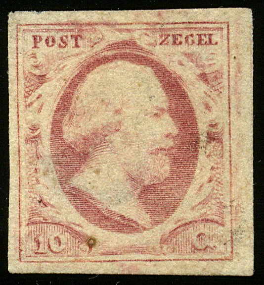 2, 10 Cent rood, postfris goed gerand vrijwel prachtex. met volle, originele gom zonder plakkerspoor, met origineel kringetje in het handgeschepte papier en linksboven in de rand, ver buiten zegelbeeld, dun plekje, overigens mooie zegel. € 2250