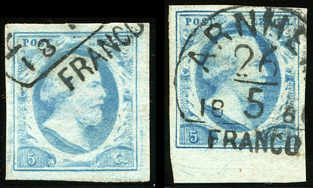 1l, 5 Cent plaat IV helderblauw, 17 losse zegels uit het rechter bovenkwadrant van een plaatreconstructie, posities 27, 28, 29, 32, 33, 34, 35, 37, 38, 39, 40, 41, 42, 43, 44, 47 en 48. Uitsluitend prachtexemplaren in uitgezochte kwaliteit w.o. randstukken. € 765