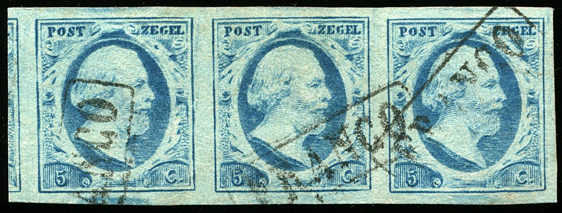 1r-Pl.VI-12/14 op dun poreus papier. Luxe strip van drie met deel linker buurzegel
