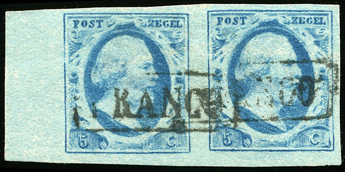 1r-Pl.VI-96/97 op dun poreus papier. Breed tot zeer breed gerand pracht randpaar