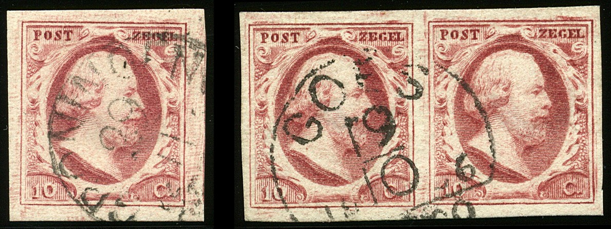 2g, 10 Cent plaat IV, 10 losse zegels en 2 paren uit het linker onderkwadrant van een plaatreconstructie, posities 56/57, 58, 59, 60, 61, 62, 66, 67, 68, 72/73, 74 en 75. Uitsluitend prachtexemplaren in uitgezochte kwaliteit w.o. randstukken. Tevens Moesman-herdruk pos. 55 (hoekstuk). € 710+