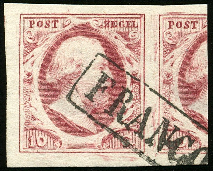 2n-Pl.VIII-37. Zeer breed gerande prachtzegel met groot deel buurzegel
