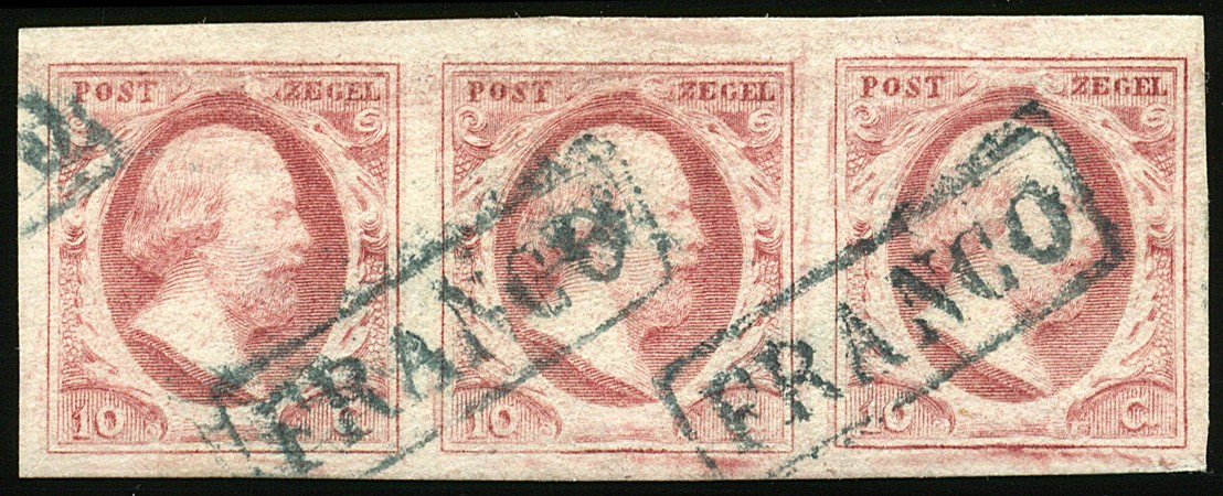 2p-Pl.X-13/15 op dik papier. Breed tot zeer breed gerande prachtstrip van drie