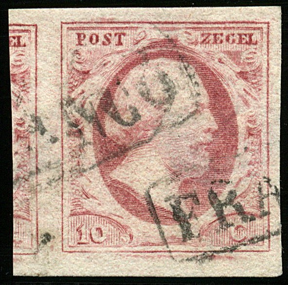 2q-Pl.X-74. Breed gerand prachtex. op dun papier met groot deel linker buurzegel