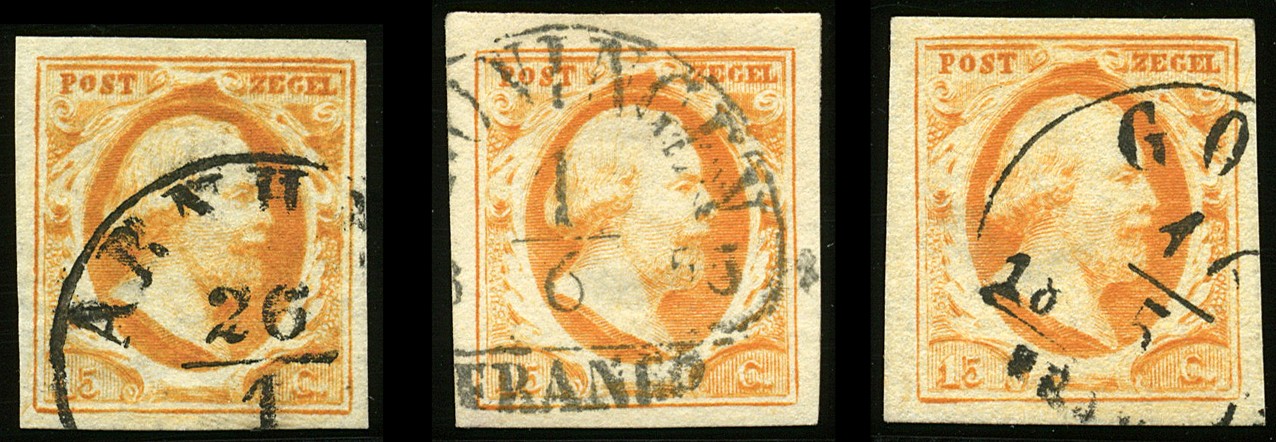 3a/b, 15 Cent in donkergeeloranje en donkeroranje, 15 losse zegels uit het rechter bovenkwadrant van een plaatreconstructie, pos. 26, 28, 33, 35, 36, 37, 39 (?), 40, 41, 42, 45 (gedeeltelijk Amersfoort C), 46, 47, 49 en 50. Uitsluitend prachtexemplaren in uitgezochte kwaliteit. € 3375+
