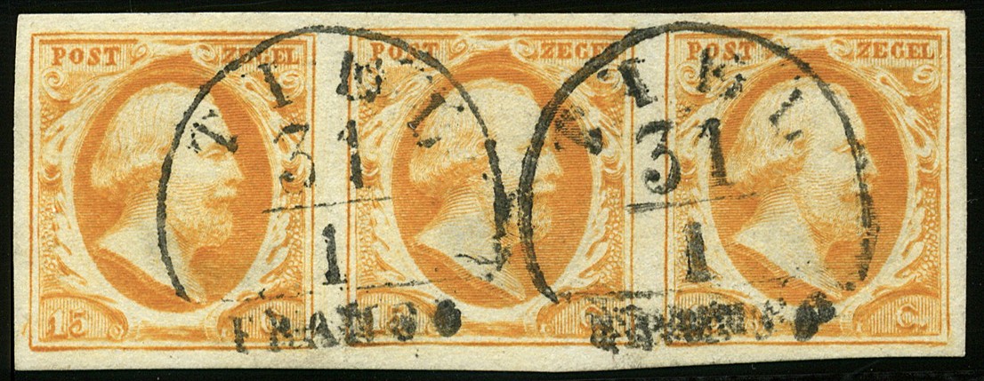 3b, pos. 68/70. Luxe strip van drie in donkeroranje met 2x Tiel A