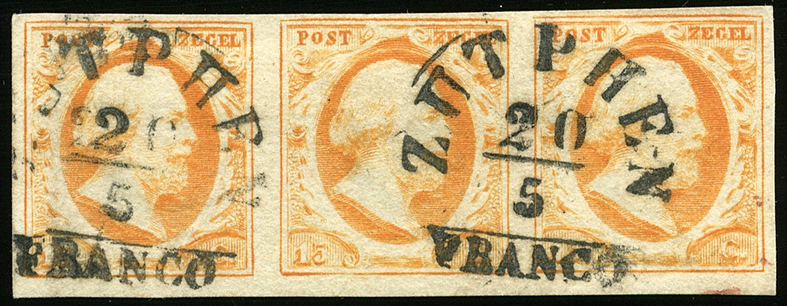 3b, pos. 81/83. Prachtstrip van drie met mooie afst. Zutphen A. € 1000