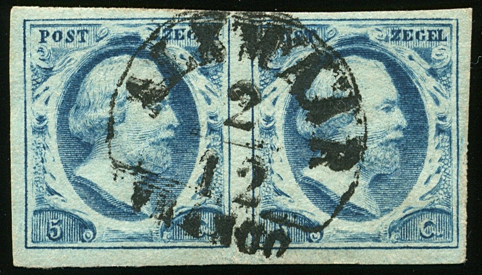 ALKMAAR A (EY.100) op 5 cent nr. 1d-Pl.II-59/60. Prachtpaar met centrale, zoals gewoonlijk een wat gevlekte afst.