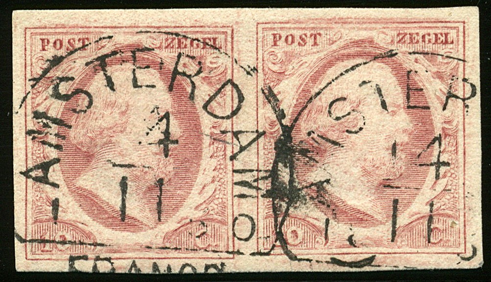 AMSTERDAM C (EY.50) op 10 cent nr. 2i-Pl.V-4/5. Breed gerand prachtpaar met volledige afst. op linker zegel