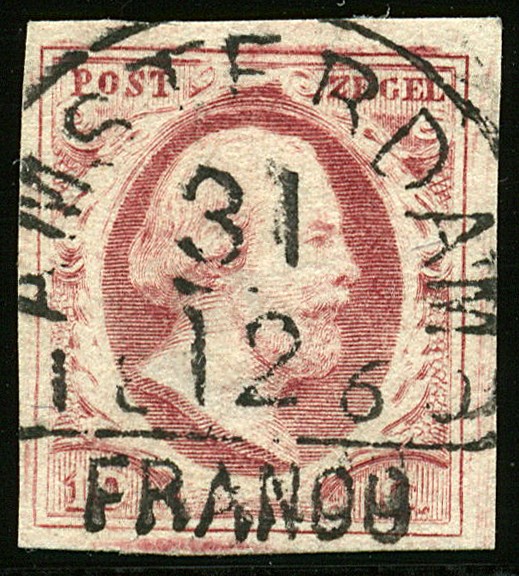 AMSTERDAM C klein met Franco groot en ovale ´O´ (EY.50) op 10 cent. Prachtex. met luxe afst. op oudjaar 1860