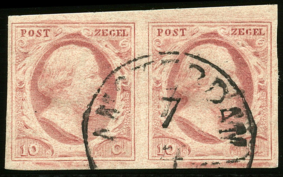 AMSTERDAM C zonder jaartal (EY.100) op 10 cent nr. 2i-Pl.77/78. Breedgerand prachtpaar met lichte centrale afstempeling