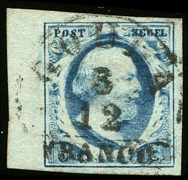 GOUDA A (EY.50) op 5 cent nr. 1f-Pl.II-26. Pracht randstuk met complete afst.