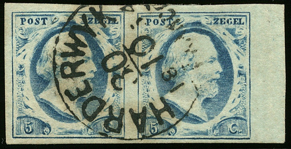HARDERWYK C groot (EY.250) op 5 cent nr. 1c-Pl.I-19/20. Pracht randpaar met volledige afst.