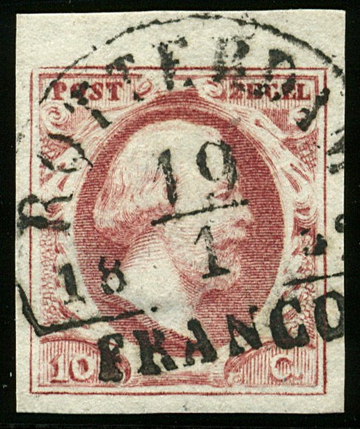 ROTTERDAM B klein (EY.50) op 10 cent diepdonkerkarmijn nr. 2a-Pl.I-77. Pracht randstuk met ideale afst.