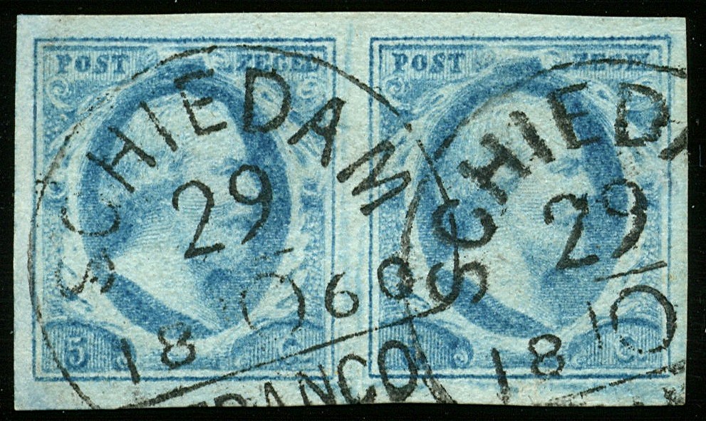 SCHIEDAM C groot (EY.75) op 5 cent nr. 1l-Pl.IV-63/64. Prachtpaar met mooie afst.