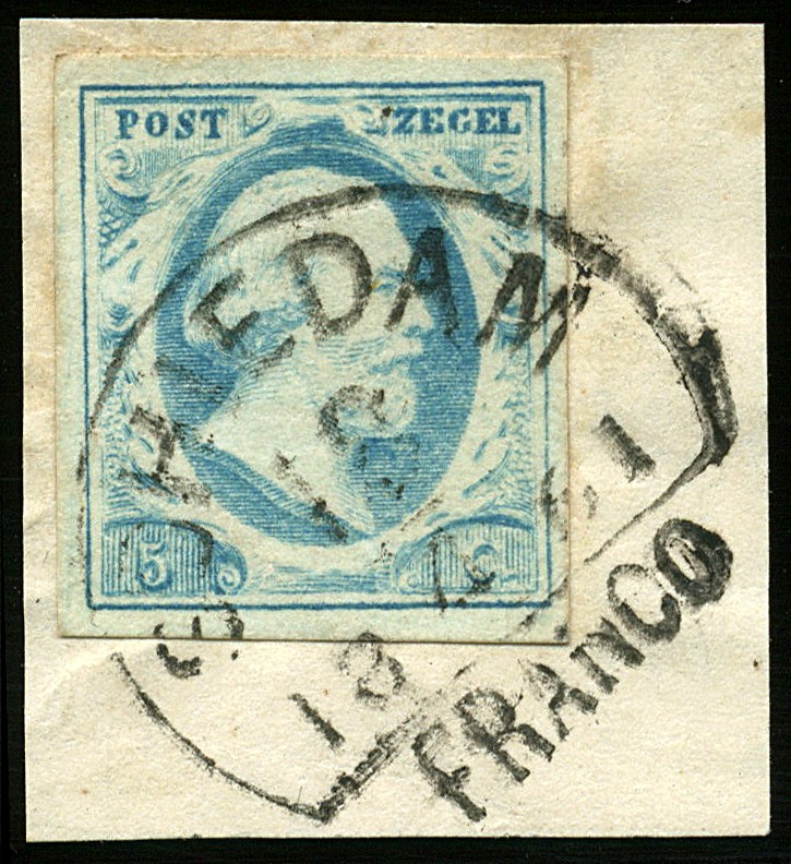 SCHIEDAM C groot (EY.75) op 5 cent nr. 1n-Pl.IV-89. Prachtex. op briefstukje met zeer late afst. op 18(?)-4-1861