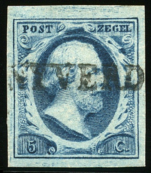 Naamstempel NYVERDAL (EY.100) op 5 cent nr. 1i-Pl.III-94. Prachtex. met mooie afst.