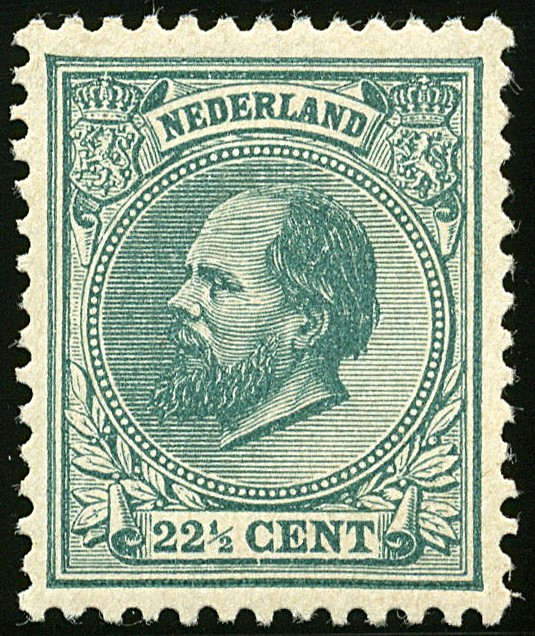 25L, 22½ cent blauwgroen, Kt. 12½ gr.g., ongebr. prachtex. € 400