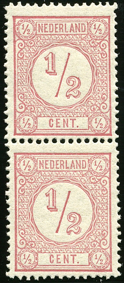 30BI + II, ½ cent roze, type I en II in postfris verticaal prachtpaar € 750 +