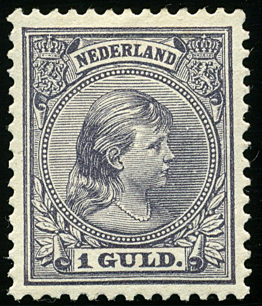 44, 1 Gulden grijviolet, postfris prachtstuk met cert. BPB (2003) € 5500
