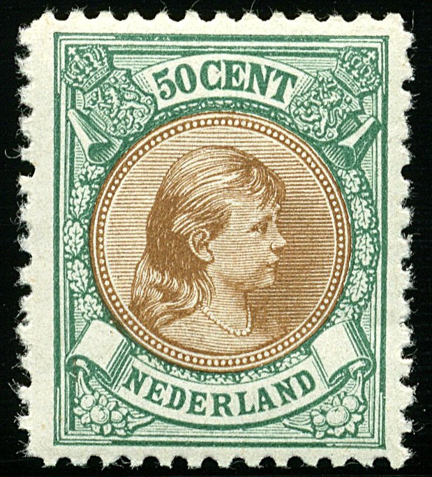 45B, 50 cent donkergroen en bruin, Lijntanding 11½ x 11, postfris prachtex. € 825