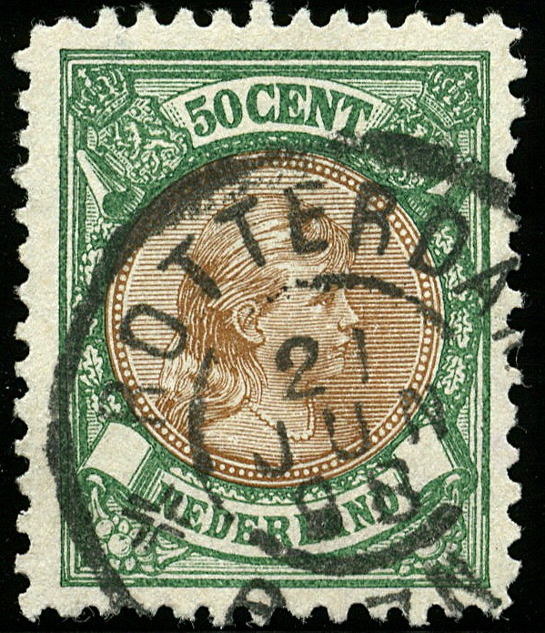 45C, 50 cent donkergroen en donkerbruin, Lt. 11, gebruikt pr.ex. met Befund Dr. Louis (2000) € 275
