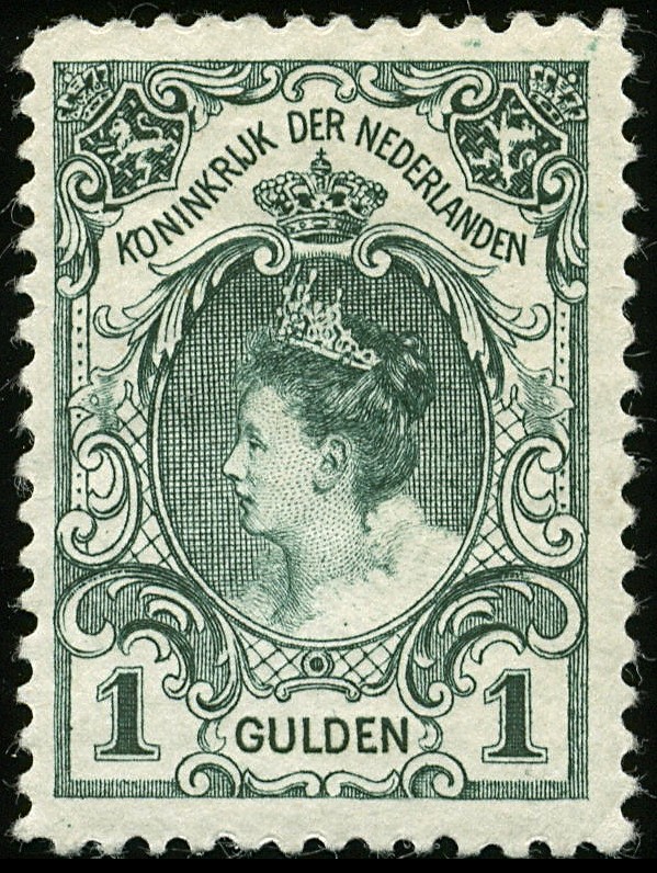 77D, 1 Gulden blauwgroen, Lt. 11½, postfris prachtex. met cert. Vleeming (2007) € 550