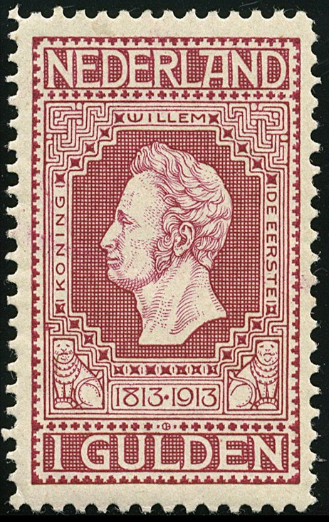 98B, 1 Gulden wijnrood, Lt. 11½, postfris prachtex. € 350