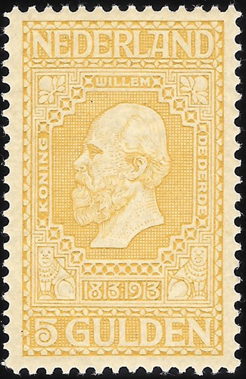 100, 5 Gulden geel op roomkleur, postfris prachtex. € 740