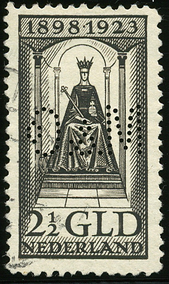 130, 2½ Gulden Jubileum 1913 met perfin Verhoeven/van der Lee type M&Co 5, gebruikt prachtex. Schaars