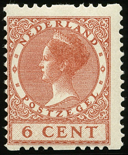 7, 6 cent zonder watermerk, postfris, iets gedecentreerd prachtex. € 225