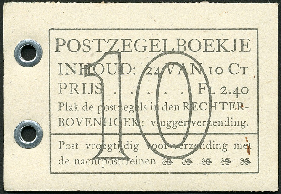 54, Fl.2,40 boekje met 4 maal 6 zegels 10 cent violet nr. 478 € 275