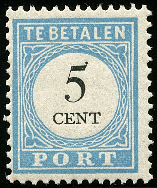 6BIII, 5 cent lichtblauw, Kt. 12½ x 12, type III, postfris prachtex. met cert. NVPH (2008) € 1200