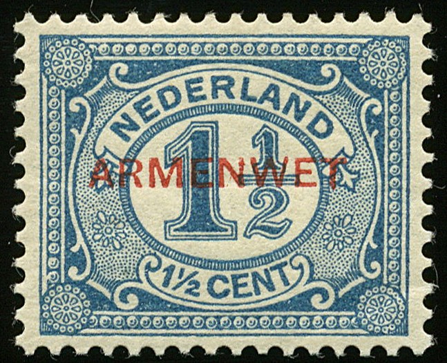 8, 1½ cent donkerblauw met rode opdruk Armenwet, origineel gomkreukje en puntje in papier, ov. postfris prachtex. met Befund Vleeming (2017) € 300
