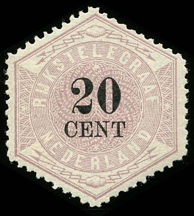 6, 20 cent lila en zwart, beh. een enkel iets korter tandje en rood eigendomsstempeltje op gomzijde een postfris prachtex. met cert. NVPH (2017) € 1600