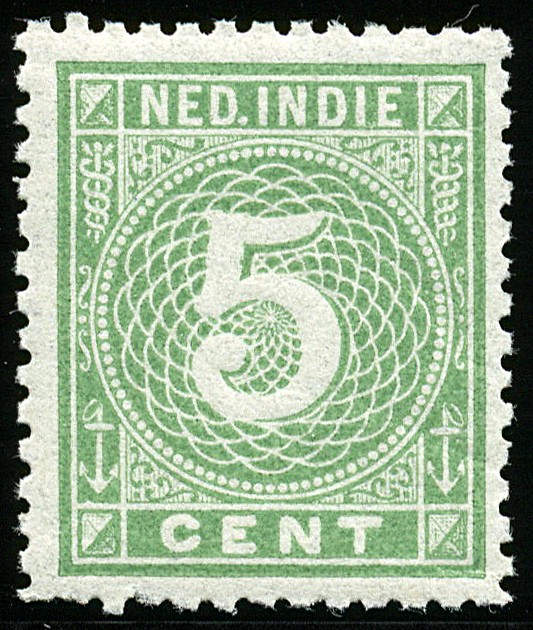 21, 5 Cent geelgroen, postfris vrijwel prachtex. (tanding onder wat onregelmatig). € 325