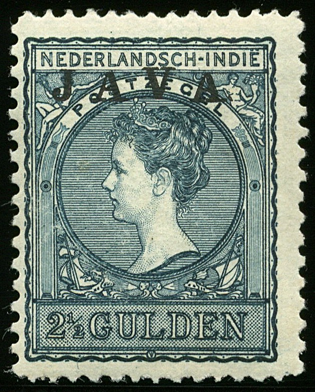 80a, 2½ Gulden zwartblauw met opdruk JAVA kopstaand, ongebr. vrijwel prachtex. (iets inkt-abklatsch op gomzijde), keur Ned. Bond en cert NVPH (1977) € 3500