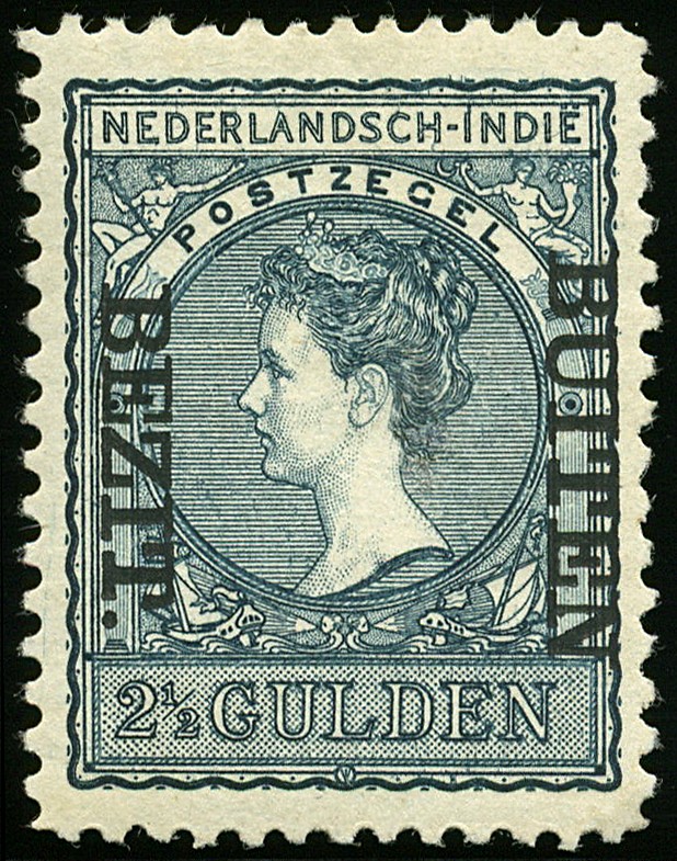 98f, 2½ Gulden zwartblauw met opdruk BUITEN BEZIT kopstaand, ongebr. prachtex. met keur Koopman en cert. NVPH (1998) € 3500