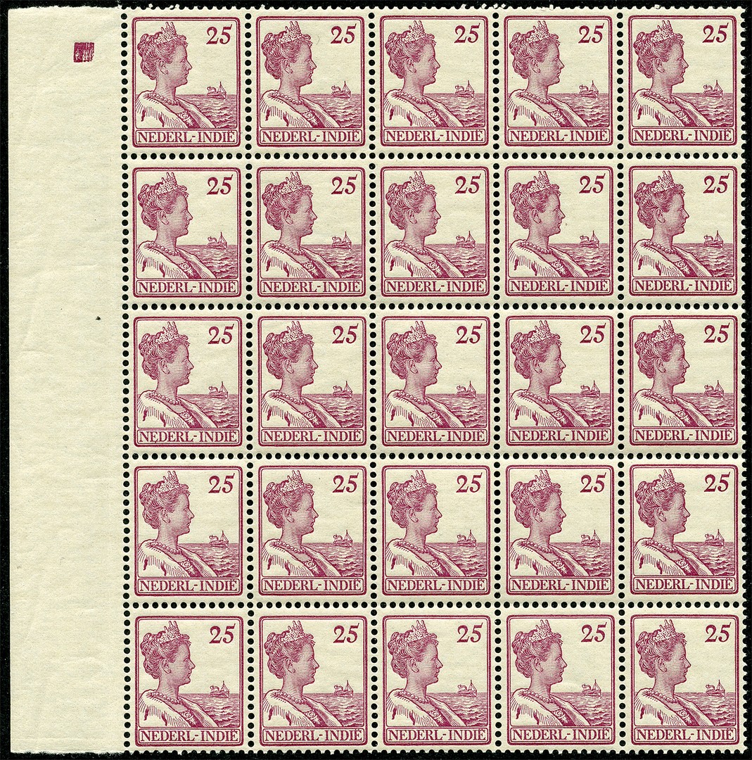124, 25 Cent lila in postfris pracht randblok van vijfentwintig. € 375