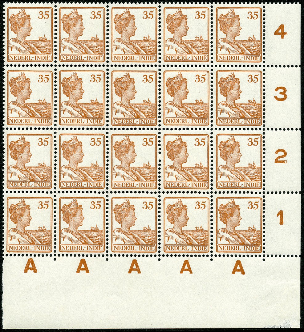 127, 35 Cent roodbruin in postfris pracht hoekblok van twintig met oplageletter A. € 1000
