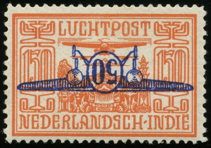 LP17f, 50 ct op 1.50 gulden met variëteit ´Kopstaande opdruk´, ongebruikt vrijwel prachtex. met volle, originele gom (gom iets getint met miniem bruin puntje) waarop enkele keurmerken zoals van ´Nd. Bd´. Cert. ´NVPH, 1994´. Ex Gustav Keiser. € 2750