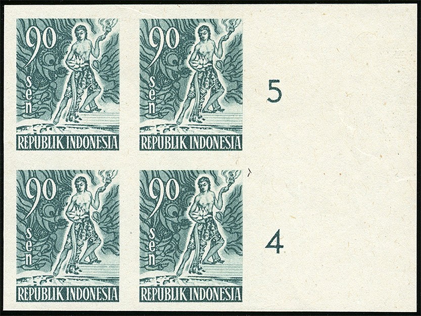 KPI.112A/116A, Spirit van Indonesia 1953, ongetand en ongegomd in pracht randblokken van vier. Rp. 4.000.000