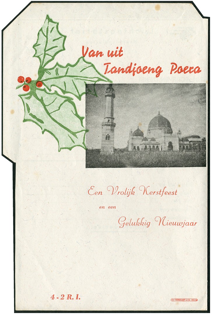 Militair luchtpostblad G2 met aan de binnenzijde links zwarte, rode en groene druk ´Van uit Tandjoeng Poera ... 4-2 R.I.´, Hintzen/De Baar AG, ongebruikt vrijwel prachtex.