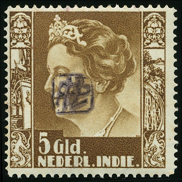 Sumatra. Palembang. 571z-41b, 5 Gld Kreisler with blackviolet small IPL signet ring overprint, unused. Very rare! € 500