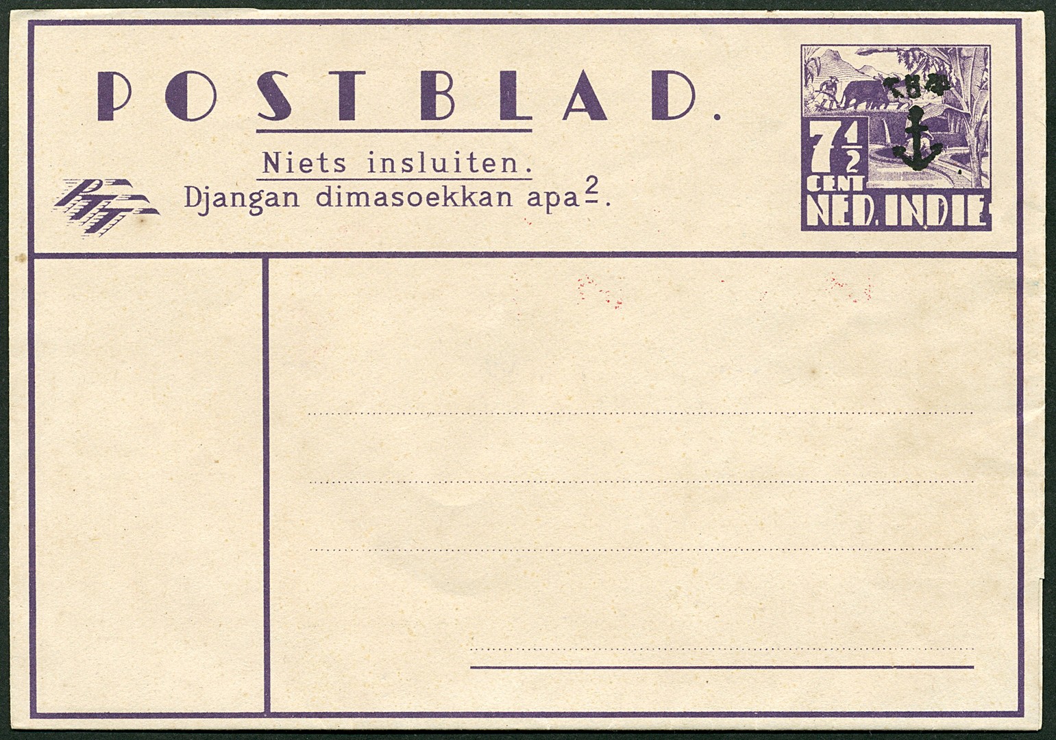Celebes. 7½ Cent letter sheet with black anchor overprint, unused (flaps sealed), Bu.239a. € 150