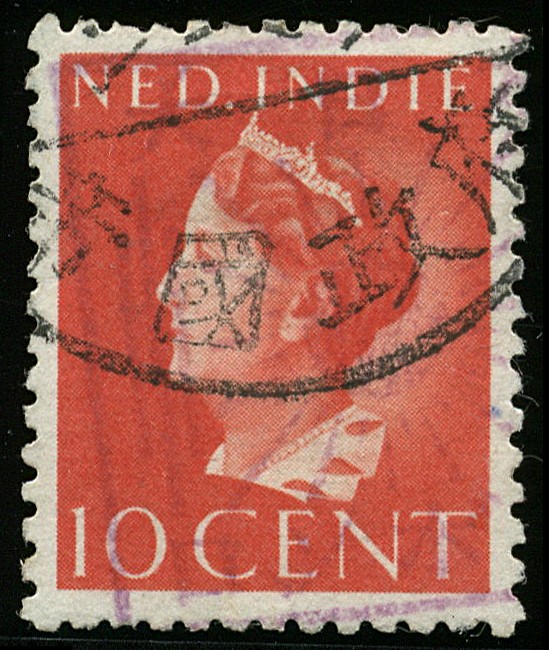 Lesser Soenda Islands. 511v-43´bk, 10c Van Konijnenburg with Lombok Sun overprint in violet, cancelled Ampenan. Only three copies are recorded! € 1150