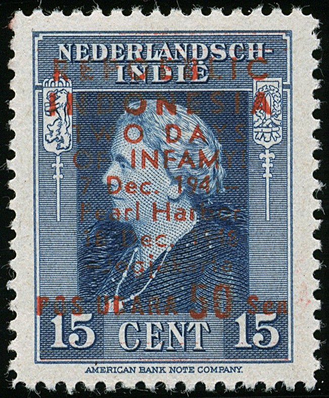 Infamy. 22 Different Regular (20x) or Airmail (2x) stamps with black or red overprints